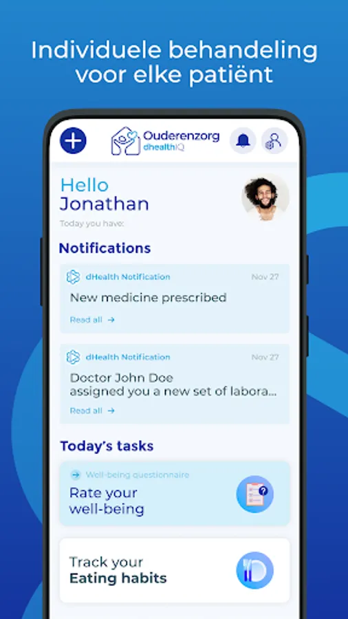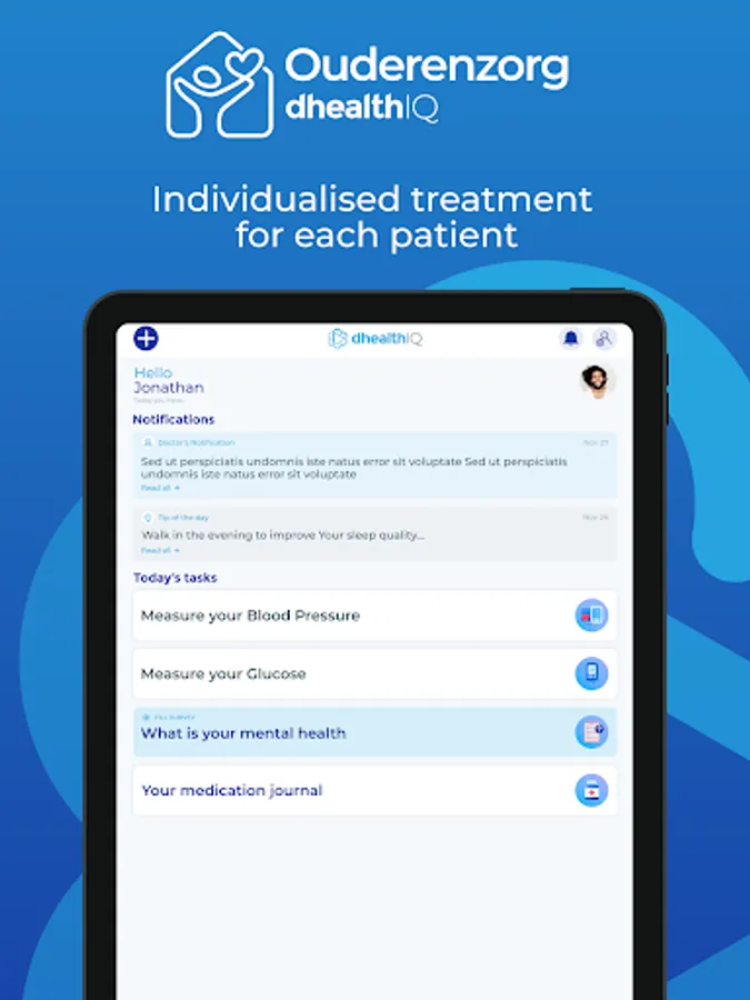 Do you want access to the Elderly Care app? Ask your primary caregiver for more information or visit our website https://dhealthiq.com/.