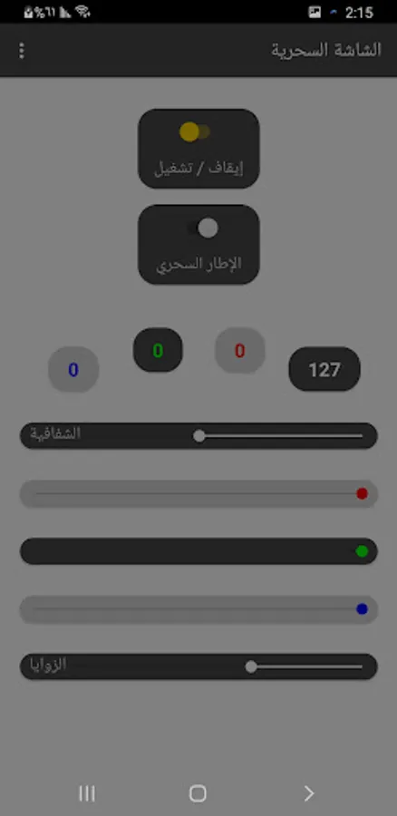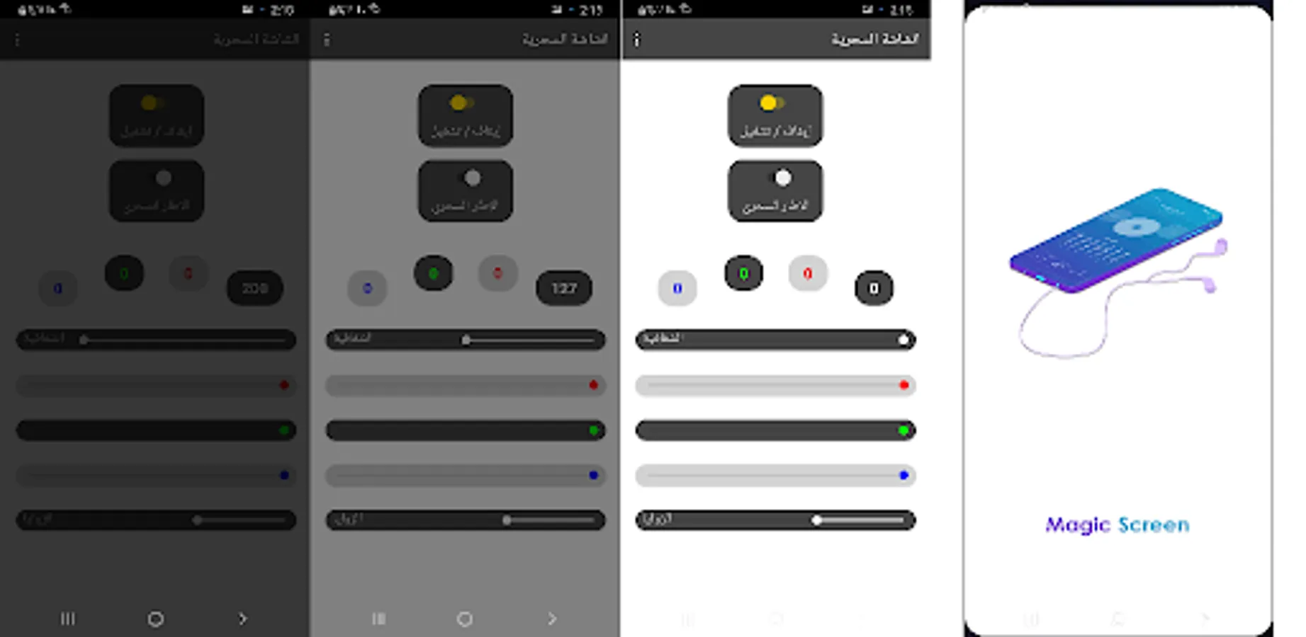 The magic screen application, is a tool that reduces the brightness of the screen and controls the color of the lighting absolutely, and adds a magic frame that changes color randomly, and the corners of the frame can be controlled.