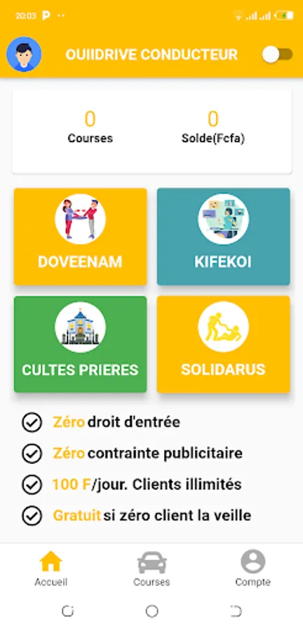 OUIIDRIVE is an application of African inspiration which draws its source in deep Africa and whose vocation is to respond to the concerns of the populations by providing them with practical solutions in particular in the field of urban transport, advertising for small businesses as well as other link building services.