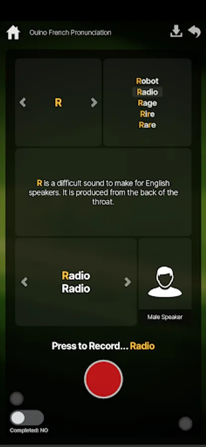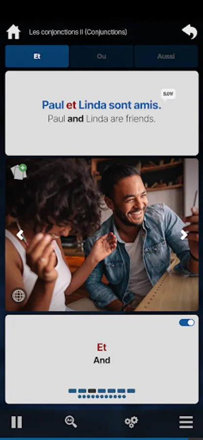 OUINO has an extensive amount of example sentences, each associated with two very helpful pronunciation speed. A fast pronunciation to help you get used to the speed of the language and understand native speakers. A slow pronunciation to break down each sentence, helping you to clearly understand how words are pronounced.