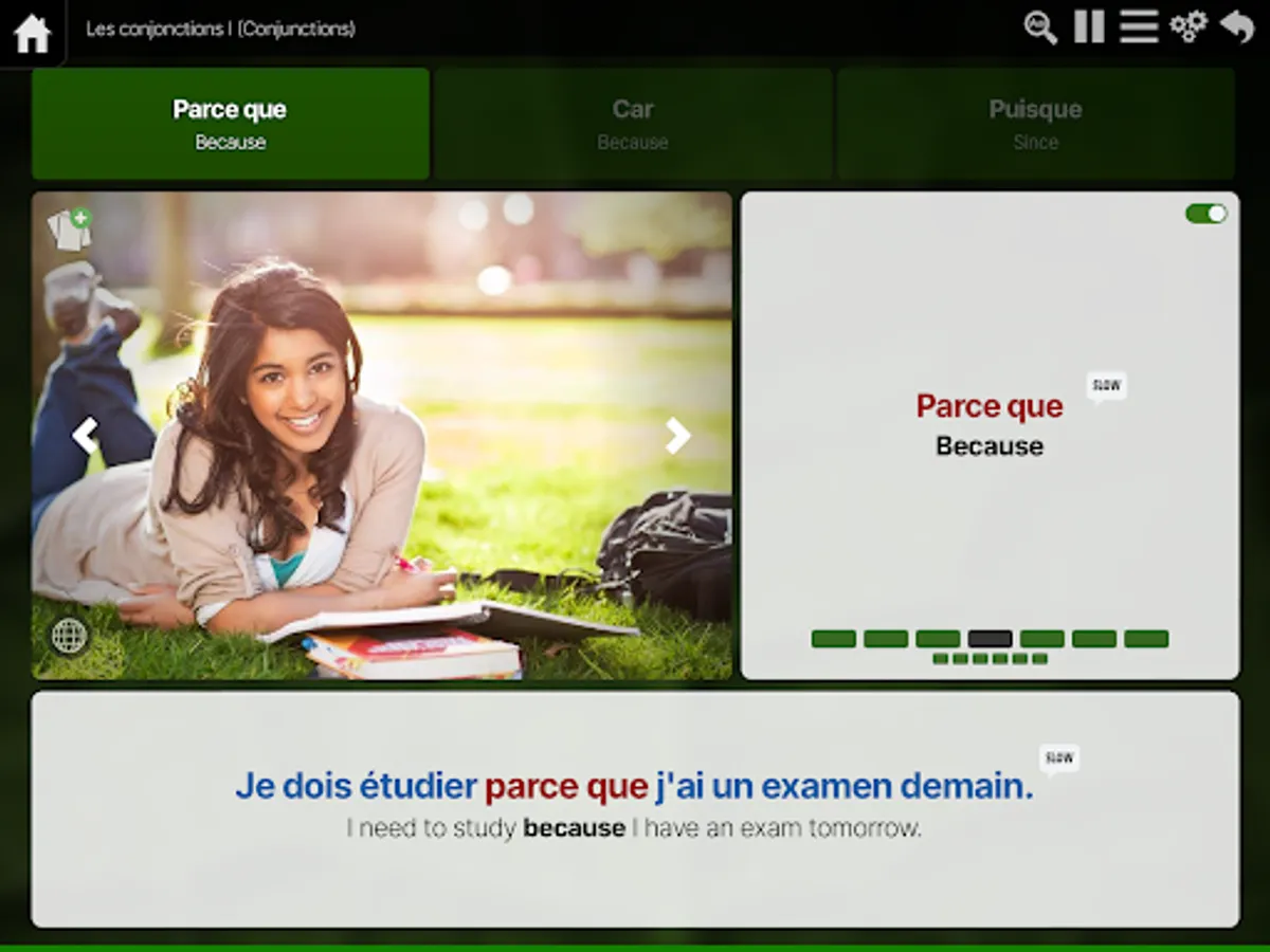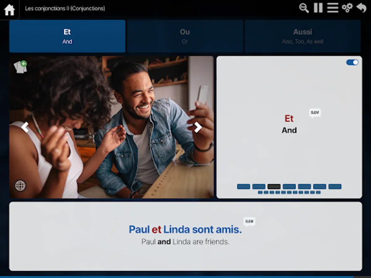 OUINO French is the all-in-one complete solution to learn French fast. The program now includes over 450 lessons, 60 shorts stories, several pronunciation exercises and over 1300 engaging games and challenges. It is the most customizable French learning program. Each lesson has useful and easy to use options that allow you to take control over your learning. Options include setting the amount of time between examples and controlling the pronunciation playback speed. Become proficient and confident in French.