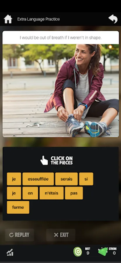 OUINO is designed as your own personal instructor, you learn what YOU want to learn, not what "lesson X" has in store for you. Let's pretend you're going to a French restaurant and you want to impress your friends with your knowledge. You can choose to learn some restaurant words and useful phrases, the verb "to eat" and "to drink" and perhaps to become familiar with some food vocabulary! You can also "tell" your program (aka your teacher) to repeat, or repeat slower, as many times as you want! Then, you can test yourself by taking the associated quiz. You are always in full control.