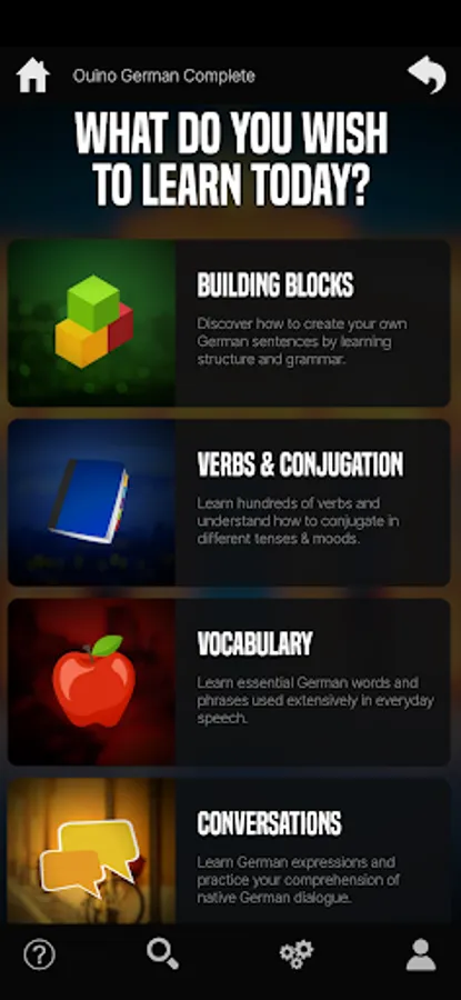 The key to learning a language is not to remember pre-made sentences, but to learn the building blocks to make your own sentences. OUINO German is based on this concept; you will gain knowledge of each individual part of a sentence in detail, discover a massive amount of vocabulary, and become skilled at using several verbs in German.