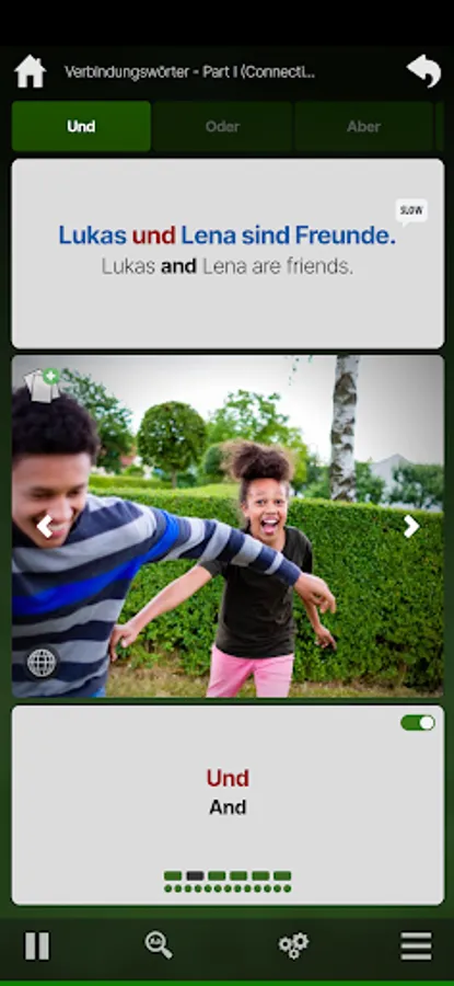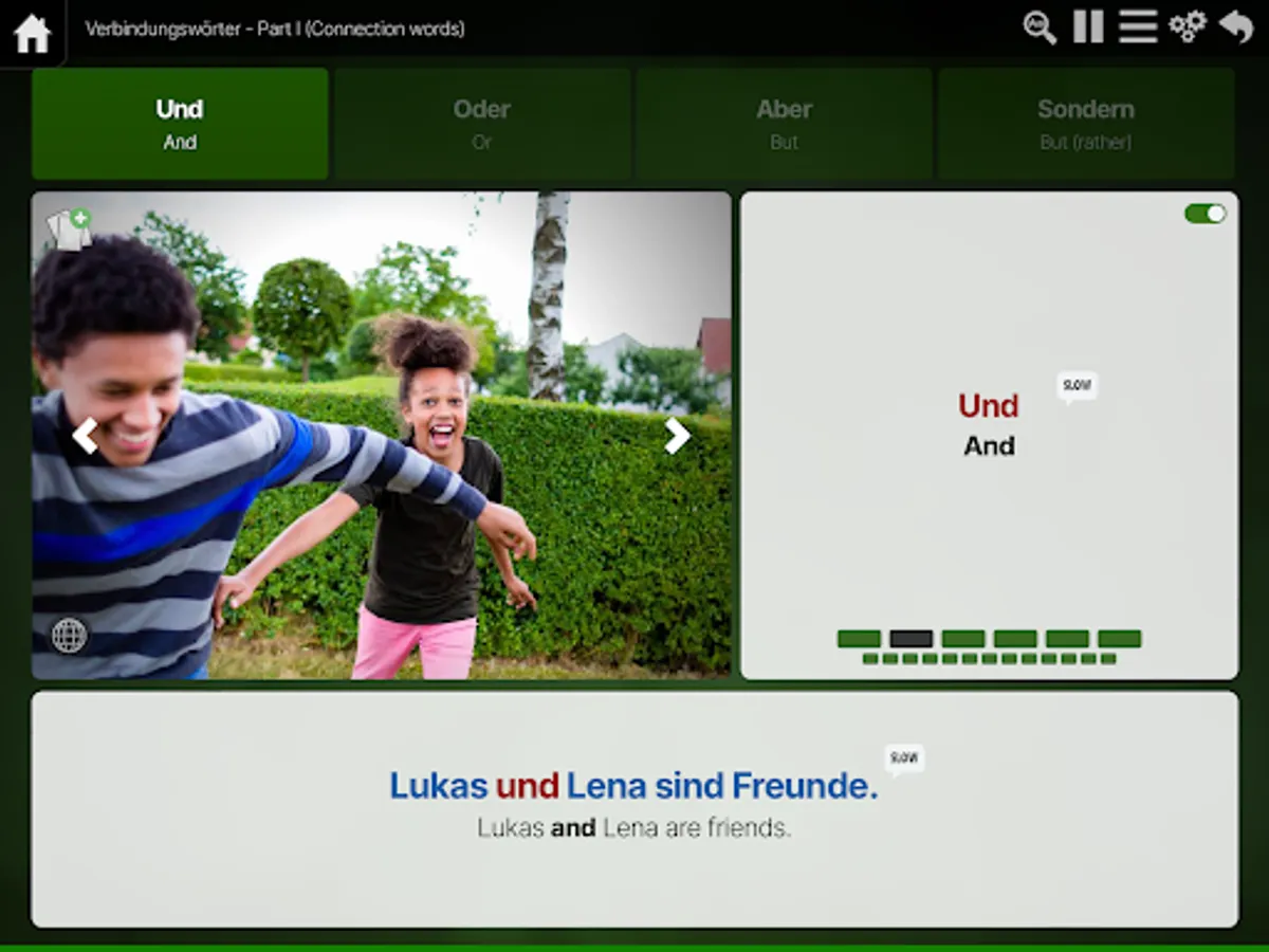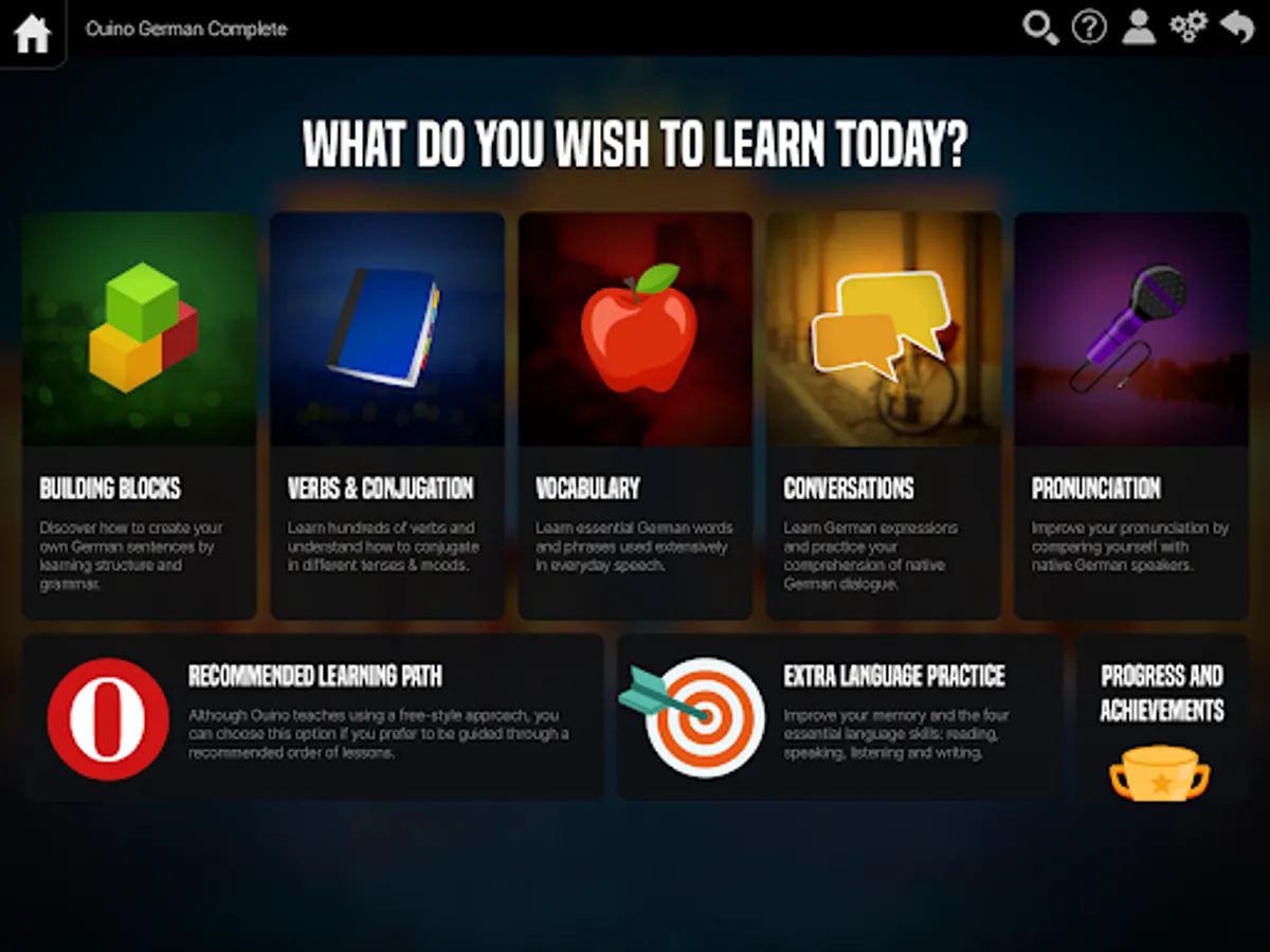 OUINO German is the all-in-one complete solution to learn German fast. The program now includes over 450 lessons, 60 shorts stories, several pronunciation exercises and over 1300 engaging games and challenges. It is the most customizable German learning program. Each lesson has useful and easy to use options that allow you to take control over your learning. Options include setting the amount of time between examples and controlling the pronunciation playback speed. Become proficient and confident in German.