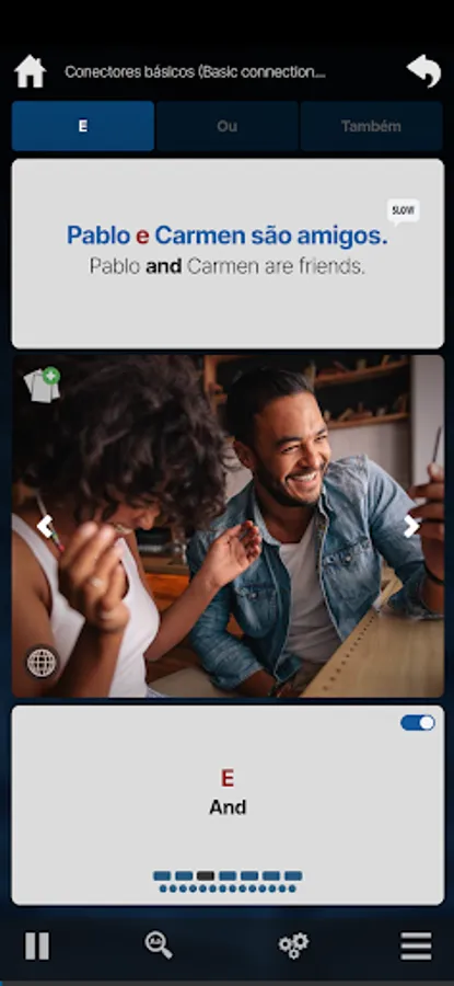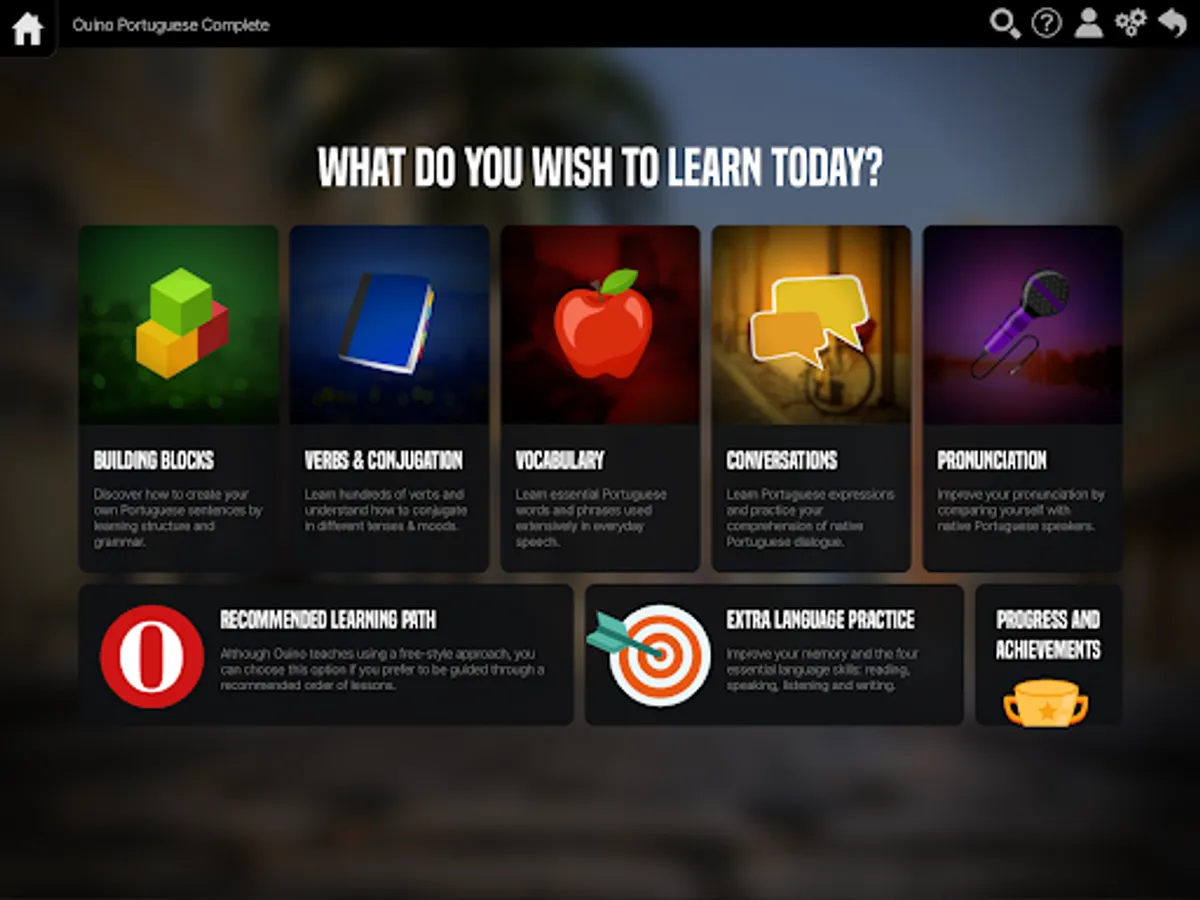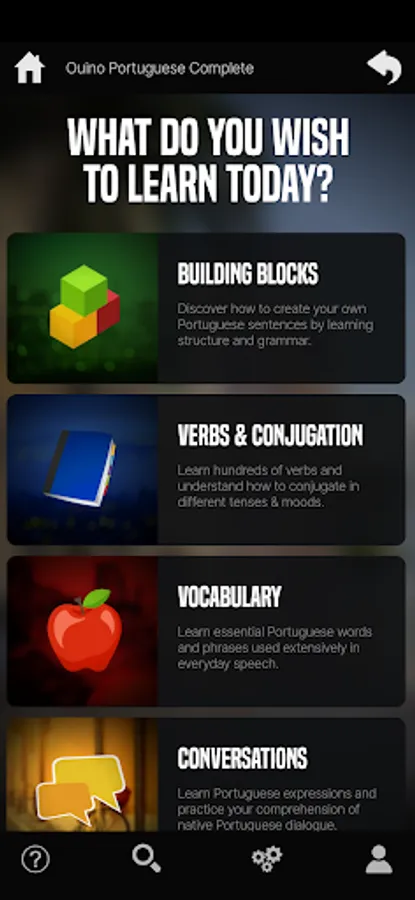 The key to learning a language is not to remember pre-made sentences, but to learn the building blocks to make your own sentences. Ouino Portuguese is based on this concept; you will gain knowledge of each individual part of a sentence in detail, discover a massive amount of vocabulary, and become skilled at using several verbs in Portuguese.