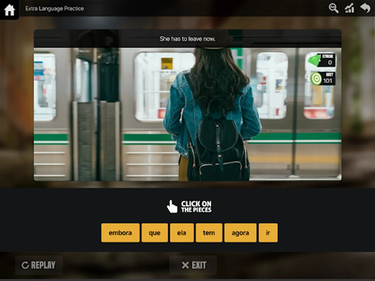 Ouino is designed as your own personal instructor, you learn what YOU want to learn, not what "lesson X" has in store for you. Let's pretend you're going to a Brazilian restaurant and you want to impress your friends with your knowledge. You can choose to learn some restaurant words and useful phrases, the verb "to eat" and "to drink" and perhaps to become familiar with some food vocabulary! You can also "tell" your program (aka your teacher) to repeat, or repeat slower, as many times as you want! Then, you can test yourself by taking the associated exercise. You are always in full control.
