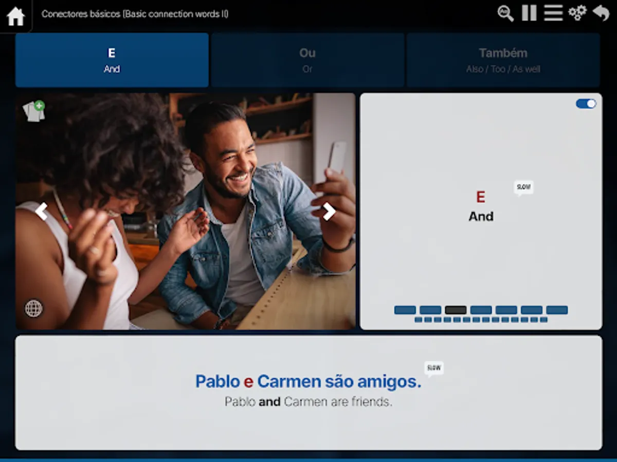 Ouino Portuguese is the all-in-one complete solution to learn Portuguese fast. The program now includes over 450 lessons, 60 shorts stories, several pronunciation exercises and over 1300 engaging games and challenges. It is the most customizable Portuguese learning program. Each lesson has useful and easy to use options that allow you to take control over your learning. Options include setting the amount of time between examples and controlling the pronunciation playback speed. Become proficient and confident in Portuguese.