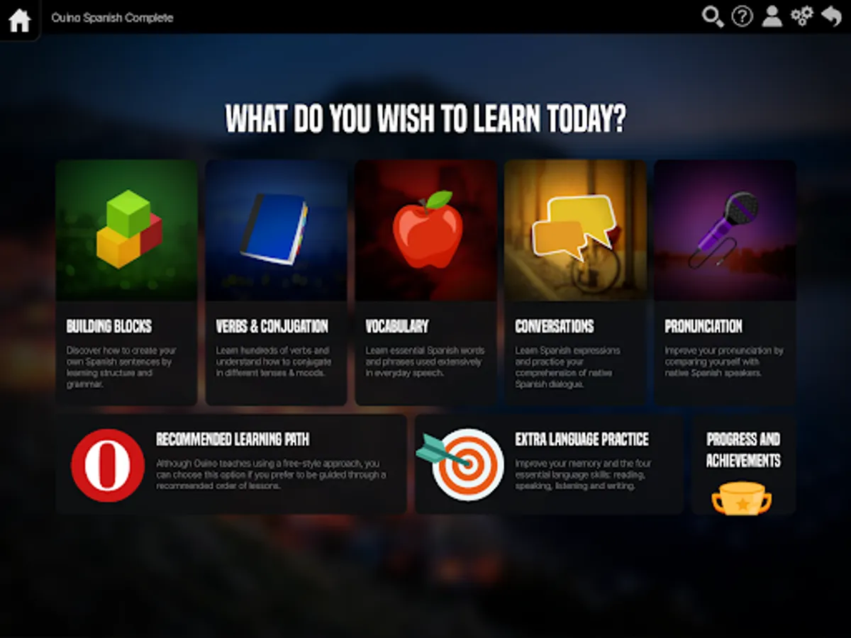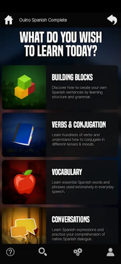 The key to learning a language is not to remember pre-made sentences, but to learn the building blocks to make your own sentences. OUINO Spanish is based on this concept; you will gain knowledge of each individual part of a sentence in detail, discover a massive amount of vocabulary, and become skilled at using several verbs in Spanish.