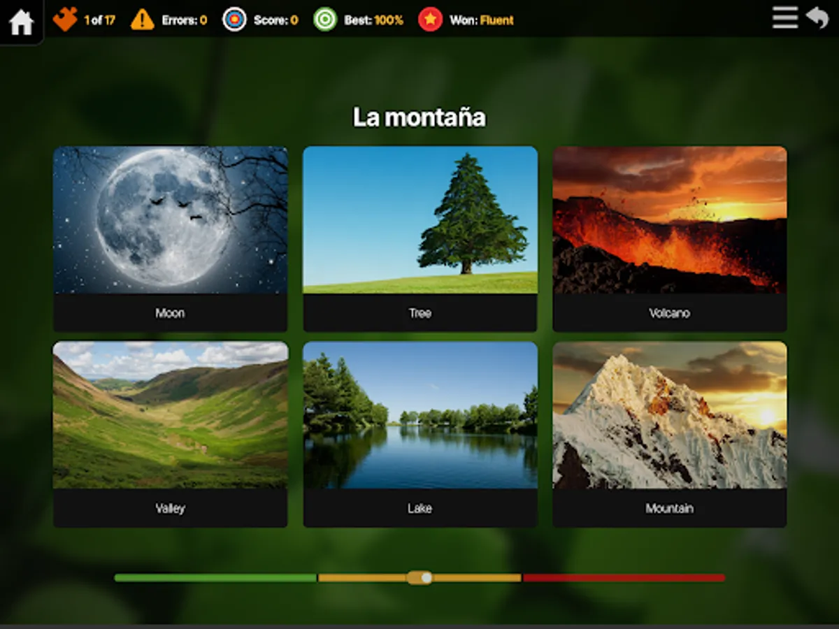 When you finish a lesson you can choose one of four levels, depending on how well you understood the lesson. Then, when you go back to the table of content you can see which topic you need to improve on.