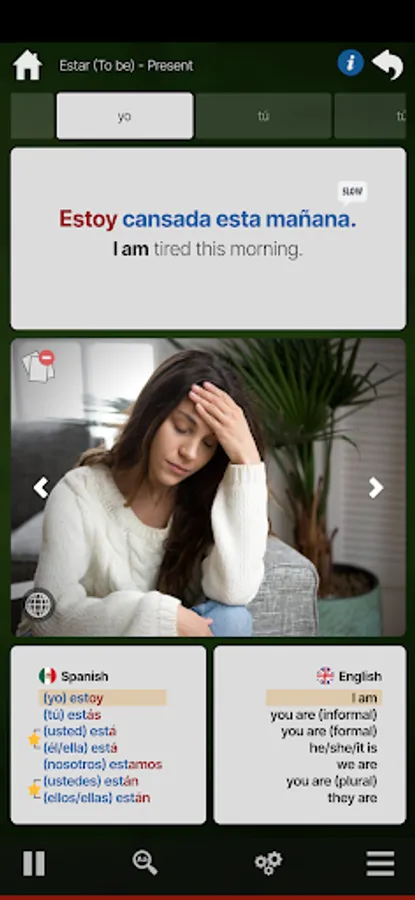 OUINO has an extensive amount of example sentences, each associated with two very helpful pronunciation speed. A fast pronunciation to help you get used to the speed of the language and understand native speakers. A slow pronunciation to break down each sentence, helping you to clearly understand how words are pronounced.