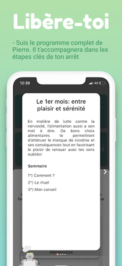Pierre your Coach will follow you throughout your journey from preparation to release. He will give you inspirational quotes and daily challenges to help you change your habits. He will also offer you a complete program including:
