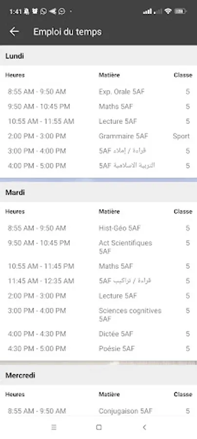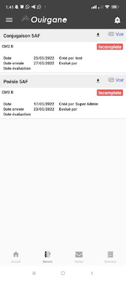 - Consultation of student attendance: Whether they are Weigh or Absent, late or half-day, the attendance report is updated every day.