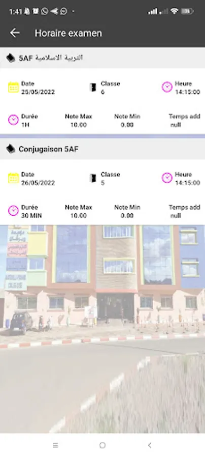 Exam timetables will be displayed in the exam section as well as several details such as time, class and duration of the exam.