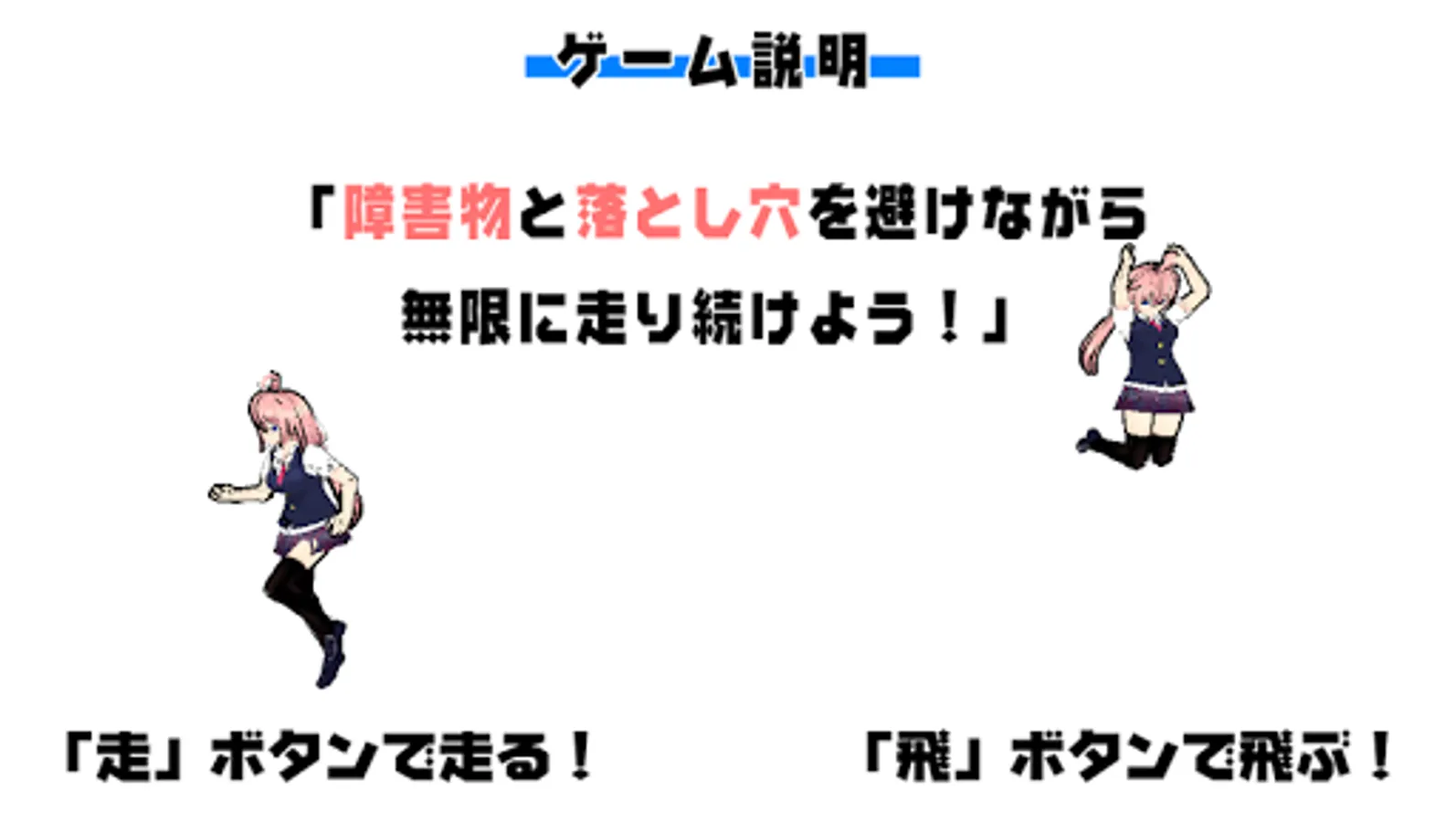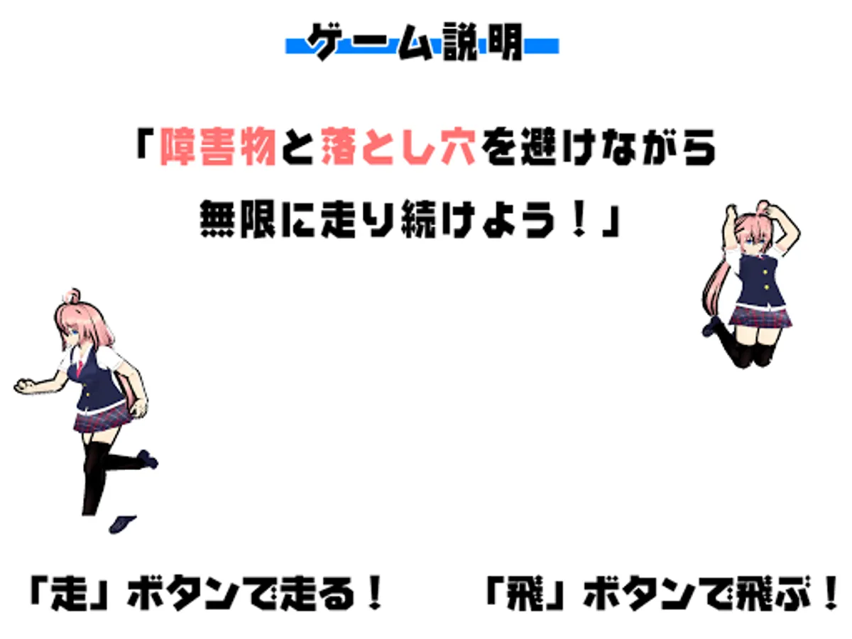 サラリーマンをモチーフにしたキャラクター「社畜ちゃん」が障害物や落とし穴を避けながら、無限に走り続けるゲームです!
