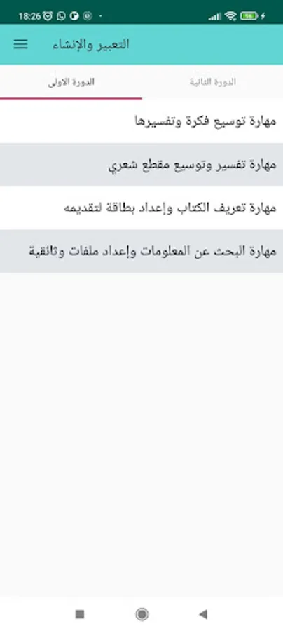 Detailed tutorial Arabic The first is a preparatory course for the first and second sessions, and for all lessons in one place. You will not need to search for any exercises or first preparatory lessons in any other application