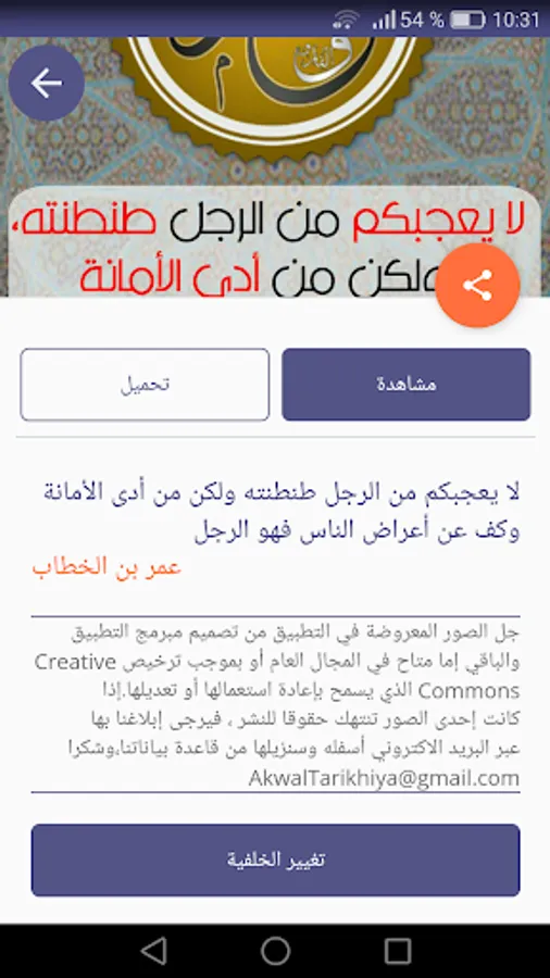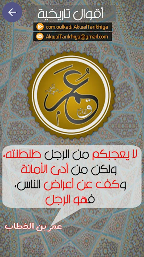 For more information, inquiries or tips do not hesitate to email us via the application or via email AkwalTarikhiya@gmail.com