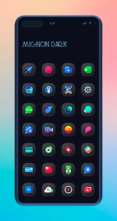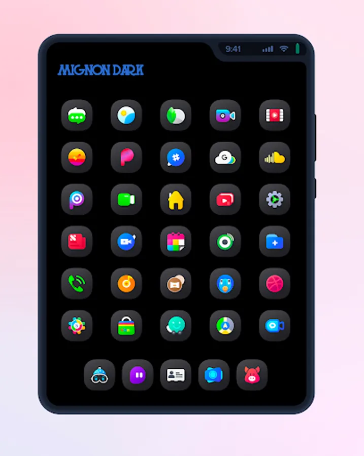 While keeping the beauty of sweet vibrant colors you’re getting a big portion of darkness too. Mignon Dark will protect your eyes from being painfully burned at night without losing the colorfulness of the original Mignon icons