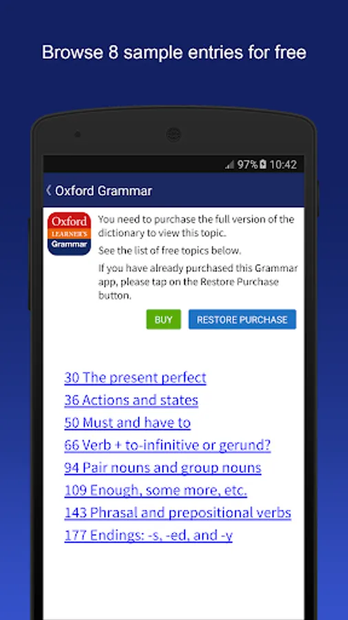 To new customers: we are sorry but there is a temporary problem with making purchases for this app, which we are working hard to resolve. If your Quick, clear and easy-to-understand explanations of the grammar you need to pass exams and communicate in English.