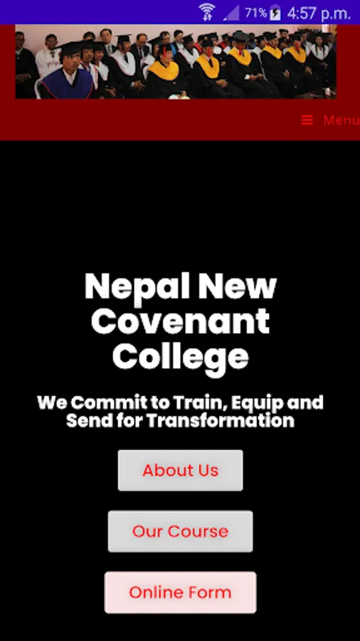: Nepal New Covenant College (NNCC) is inter-denomination college, established according to the will of our God on 28 March, 2013 for the glory of our Lord Jesus Christ. NNCC invites all including young people who have passion to fulfill the vision of our Lord Jesus Christ. We Equip our student with the sound doctrine, and train them by concentrating in the life of Jesus Christ and Send them by equipping to transform the life of people in the society.