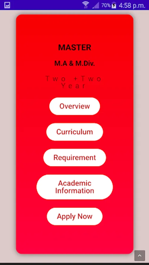 Master of Divinity (M.Div): M.Div is to produce academic Christian ministers and scholars by focusing on mission (60-90 Credits).