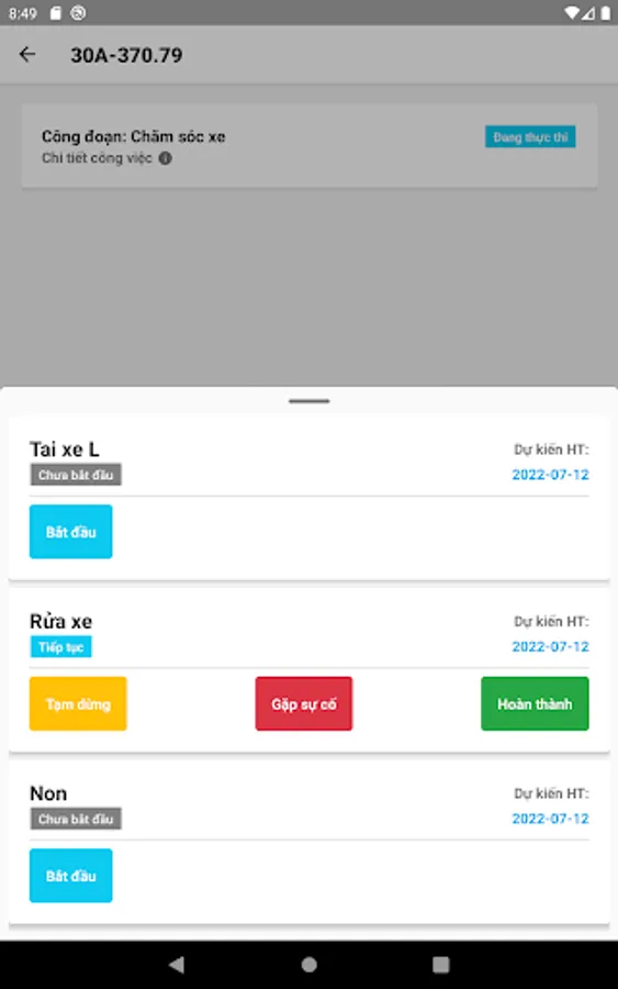 The application helps service workshop staff manage work, update job status.