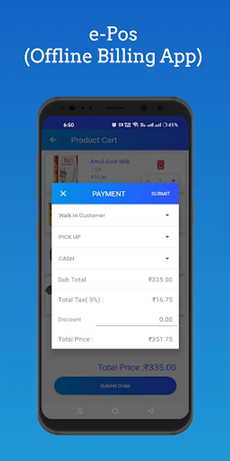 "e-POS | Billing | Offline App" is a comprehensive and user-friendly electronic point-of-sale (e-POS) application designed to streamline the billing and payment process for businesses operating in offline environments. With this powerful app, businesses can efficiently manage their sales transactions and provide seamless customer experiences, even without an internet connection.