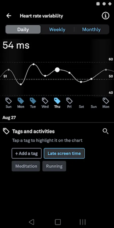 Get a clear picture of your recovery by following changes and trends in your nighttime resting heart rate and heart rate variability.