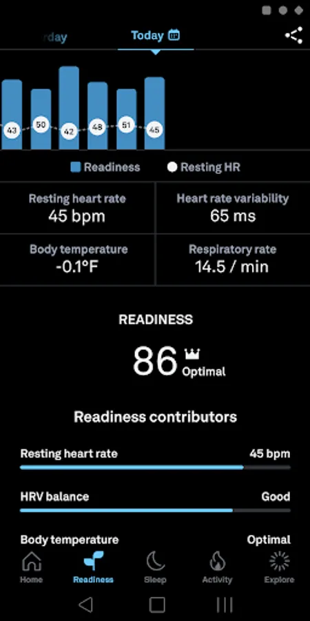 Three daily scores — Sleep, Activity, and Readiness — give you a clear understanding of the state of your body with actionable guidance on how to stay balanced.