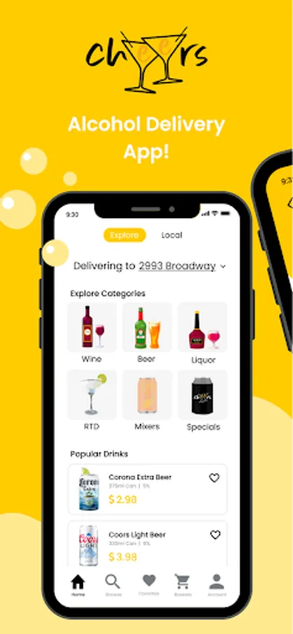 Our Cheers Delivery app allows you the ability to order alcoholic beverages, such as wine, cocktails, and beer, while supporting local small businesses!