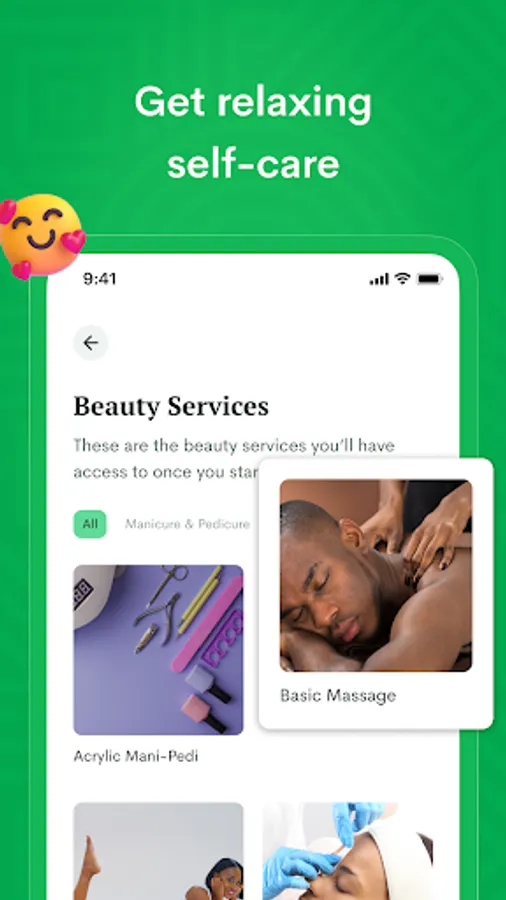 •Self-Care 💅💆♂️•Treat yourself to massages, manicures, pedicures, waxing, and threading. All you need to do is schedule your preference on the app.