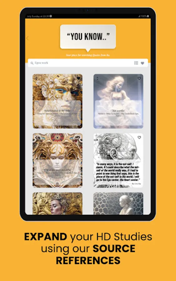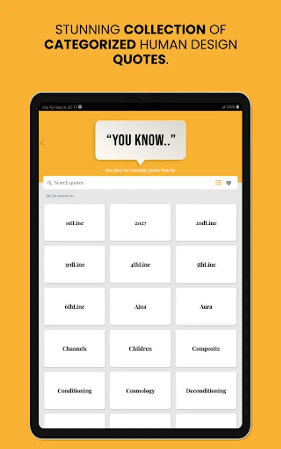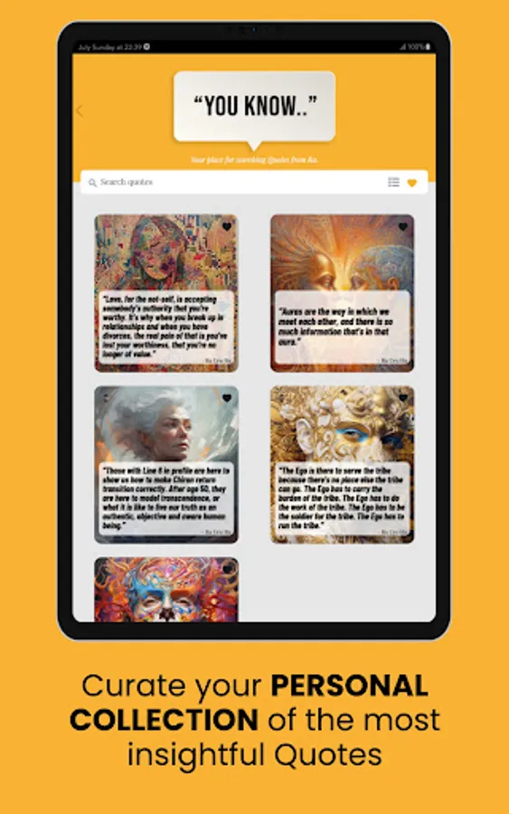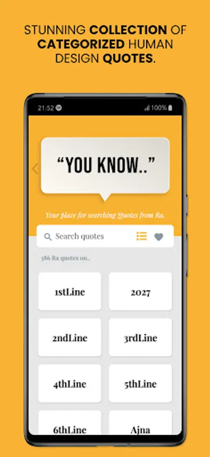 But that's not all - we're constantly adding new features to the app to make it even more exciting and interactive. In the near future, you'll be able to build your own collection of favorite quotes and even let our AI system show you quotes that relate specifically to your Human Design chart.