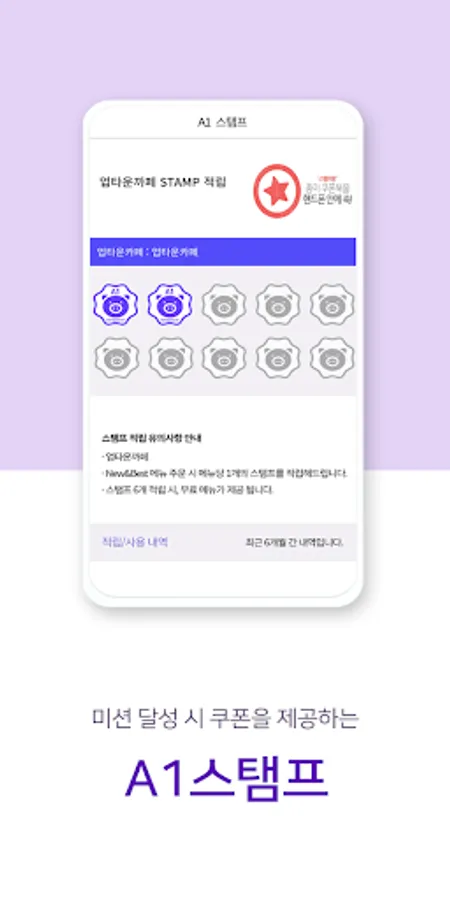 It is a menu that provides benefits such as coupons, etc.whenever a goal is achieved, such as ordering or visiting a specific menu at our restaurant brand stores, and when achieving the target stamp.