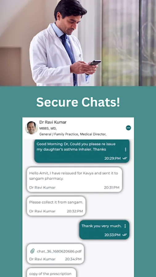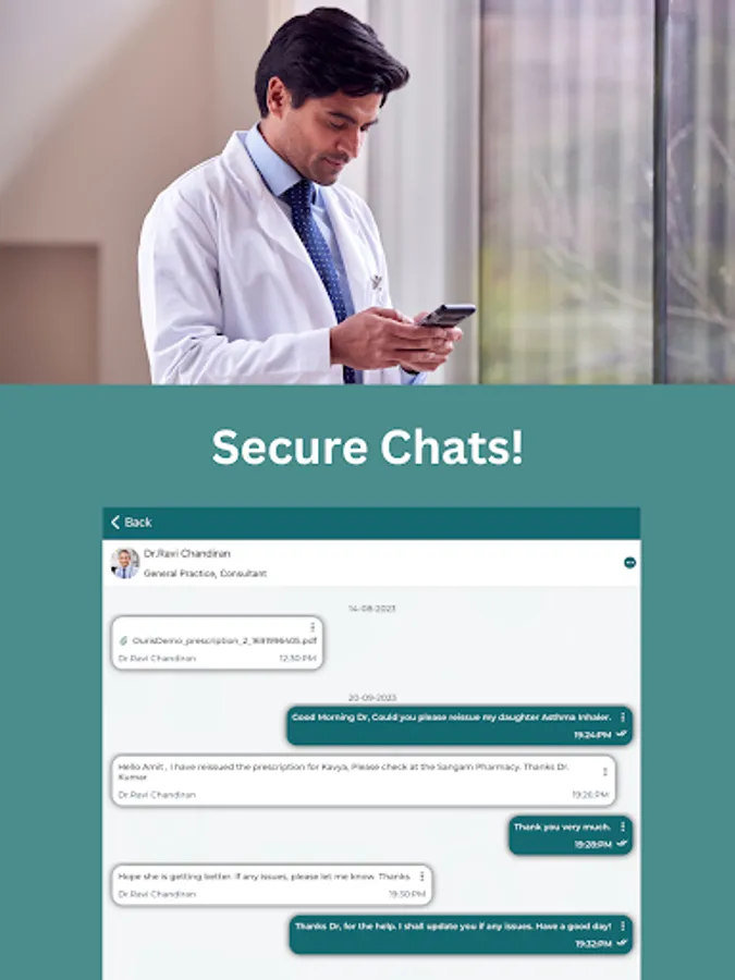 Secure Chats: Enjoy one-on-one secure chats with your healthcare providers. Communicate directly with your doctor, discuss prescriptions, lab requests, and receive medical updates in real time.