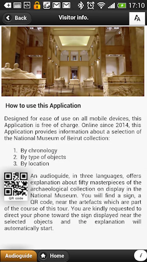 On site, this application offers an Audio Guide, in three languages, commenting around fifty masterpieces of the archaeological collection on display in the National Museum.