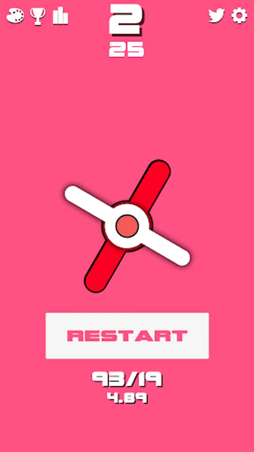 Spin your way through 40 different palettes to choose from. Spin Cycle is an endless arcade game where the objective is to stop the spinner inside of the goal. Seeing how many in a row you can get. Spin Cycle keeps track of your averages and total amounts of success and failure, displaying them every time a restart is needed.