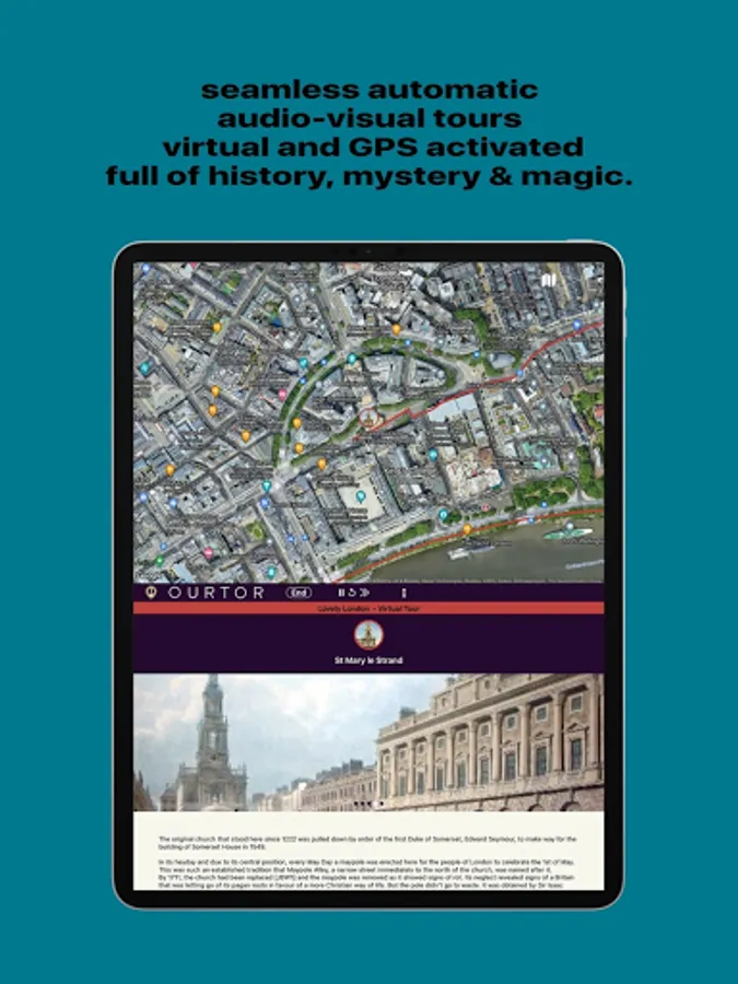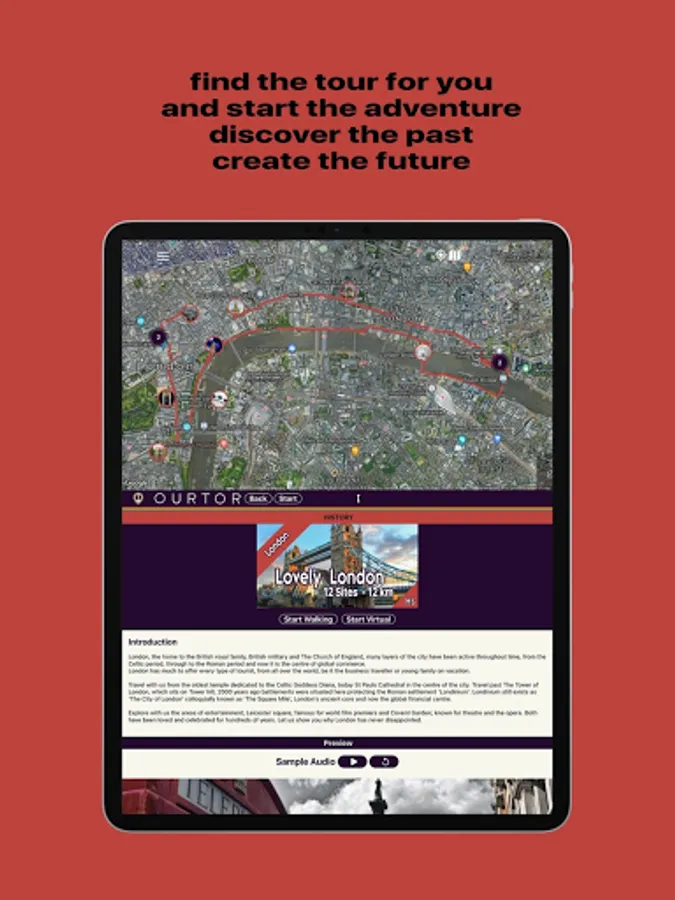 OURTOR is revolutionizing the way people tour, be it at home whilst dreaming of your next trip away or while you are actually visiting your dream destinations. With a smooth, easy, safe and secure experience we bring you history, mystery and magic straight to your device, with audio, image and words. Tours written by the people for the people. You can even listen to your favourite music as part of the experience.