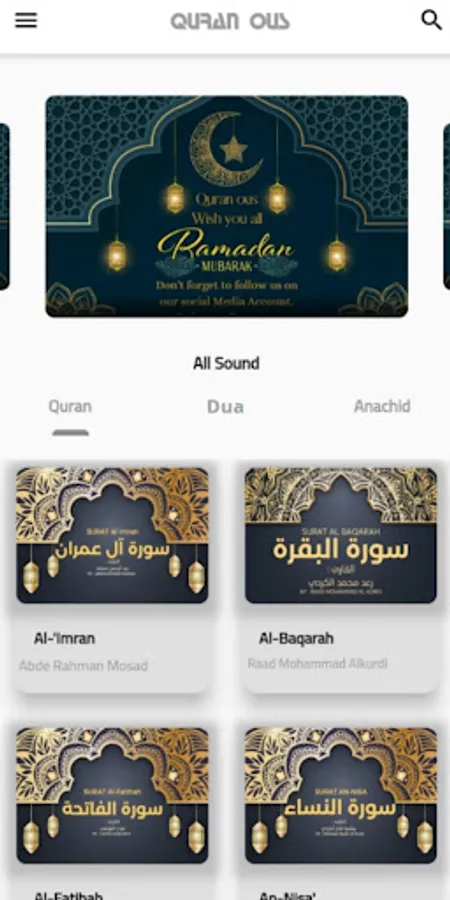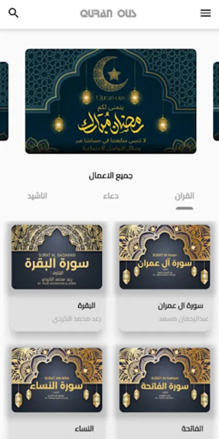 The Quran ous app is a digital application that allows users to access the surahs (chapters) of the Qur'an, supplications, and anashid (Islamic songs) on their mobile devices. The app features a user-friendly interface that makes it easy for users to navigate through the various sections of the Qur'an, including the different surahs and their corresponding verses.