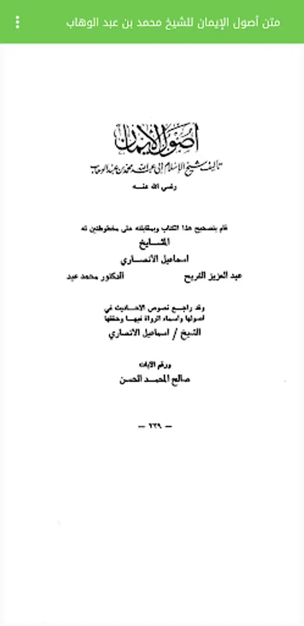 Explanation of the book Origins of Faith by the renewed Imam Muhammad bin Abd al-Wahhab - may God have mercy on him -, which is in the statement of the origins of the Islamic faith, where his author - may God have mercy on him - mentioned the characteristics and pillars of the Islamic religion, then he addressed the six pillars of faith, and concluded with exhortation and incitement to seek knowledge, and the prohibition of Controversy and discounts, and leave the depth and Altnta.