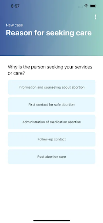 This application is developed as a Digital Decision Support (DDS) tool for the provision of comprehensive abortion care and complements the Clinical practice handbook for quality abortion care (2023), both of which are based on the WHO Abortion care guideline (2022). The main goal of the tool is to support health workers in the process of decision-making by implementing WHO standards and guidelines for the provision of quality abortion care. This is achieved by, providing checklists and contextual information for the health worker to aid case management, which will aid in minimizing errors in the provision of medical abortion, and facilitate tailored post-abortion follow-ups and appropriate referrals.