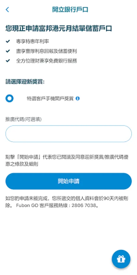 Download Fubon GO and select "Open a bank account" to start the experience.