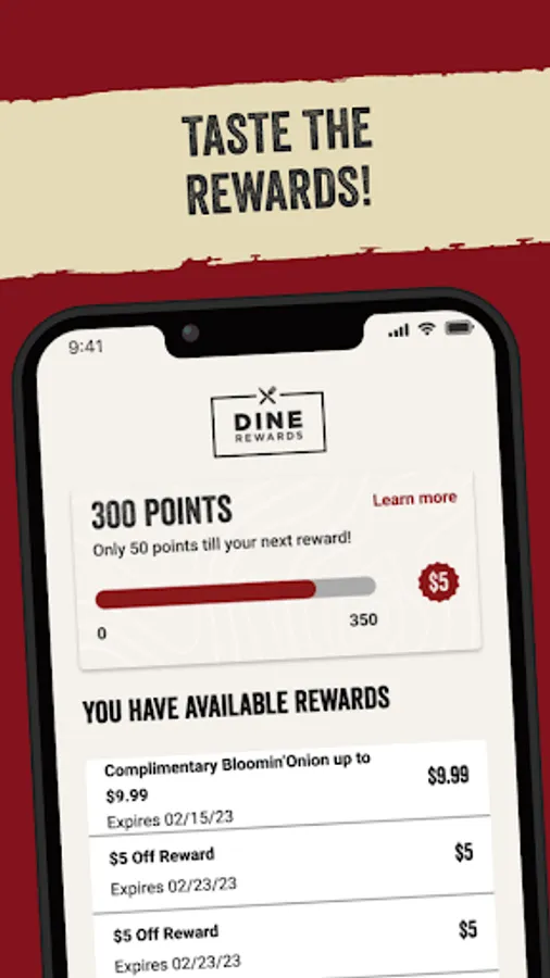 The Outback App is a convenient way to order your Outback favorites from your phone. Dine Rewards is built into the app for easy sign-up, tracking, and rewards access.