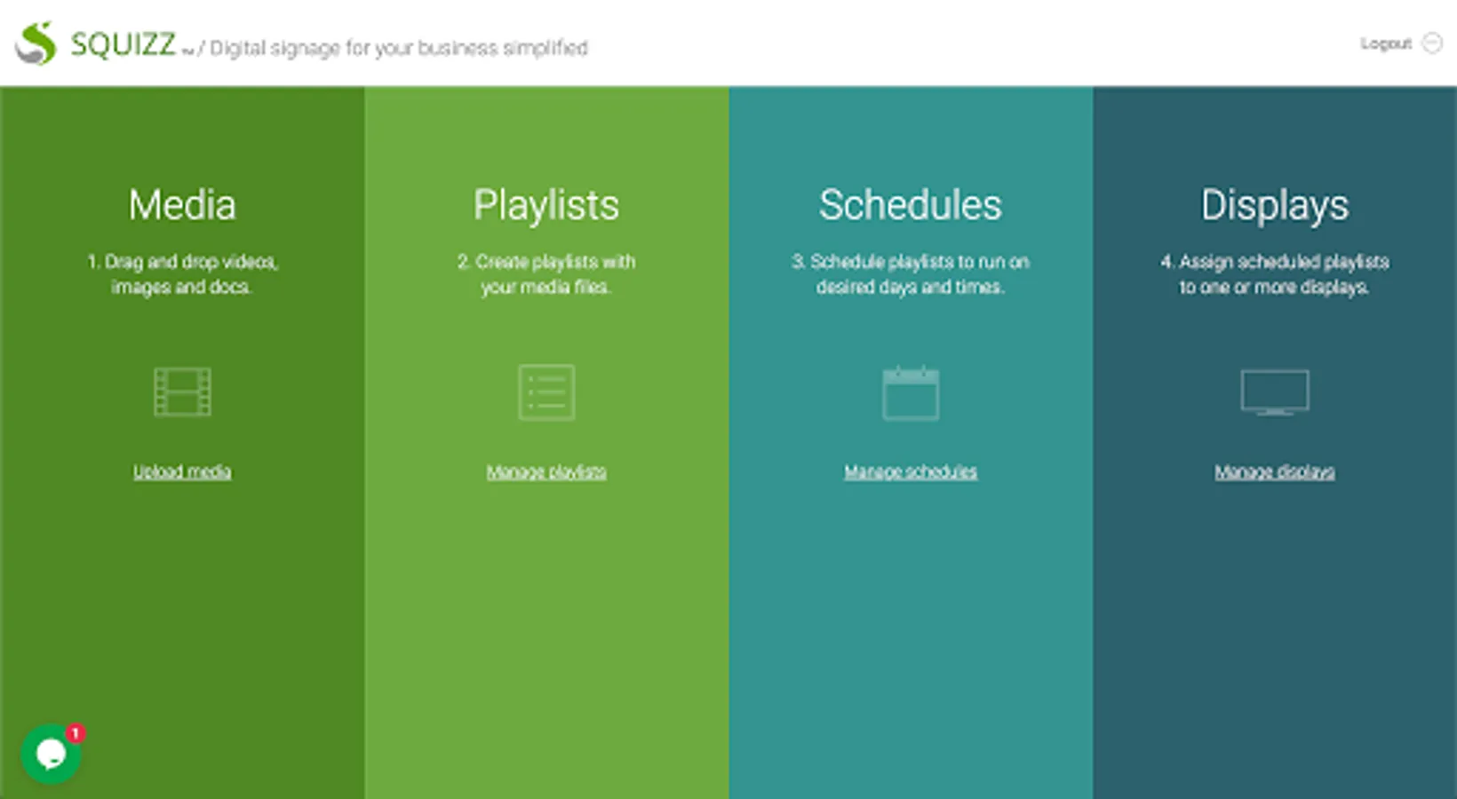 Our cloud-based system uses common display sizes to play scheduled media - managed from anywhere in the world! Squizz allows you to upload most videos and images, turning just about any display into a digital sign.