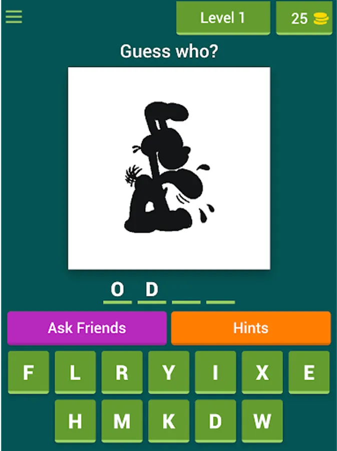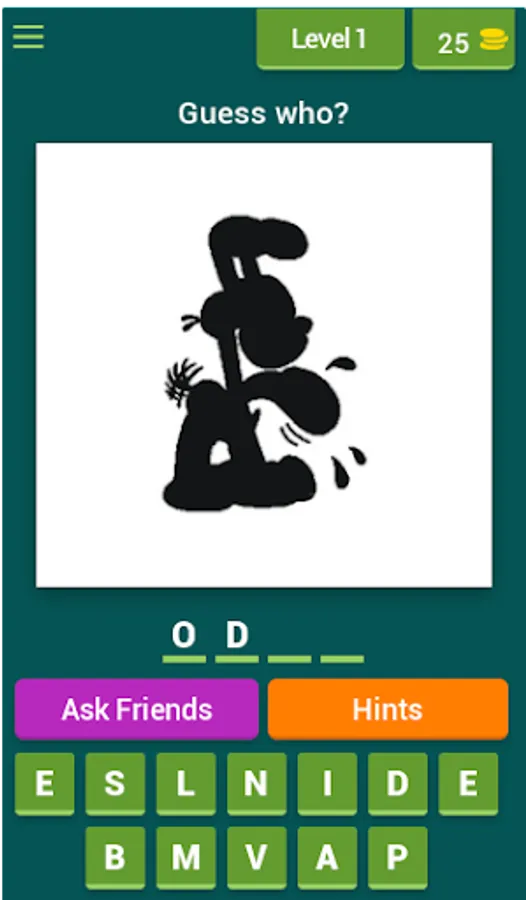 Guess the character shadow is 228 Levels of character shadow guessing fun! Can you guess the character from, TV shows, movies, cartoons, and comics to move to the next level? This is mainly a guess the cartoon game, but features human characters too. If you love character trivia games this one is for you!