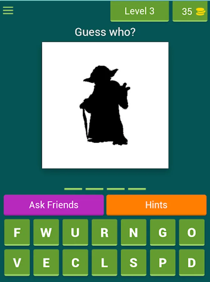 You will be given coins if you can guess the character, which you can use to buy hint letters, take away letters, and reveal who the character is if you just can't guess the correct answer.