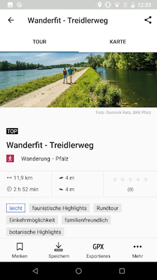 - Tourenvorschläge filtern nach Gesundheit, Familie, Erholung, Sport & Spaß sowie Geocaching