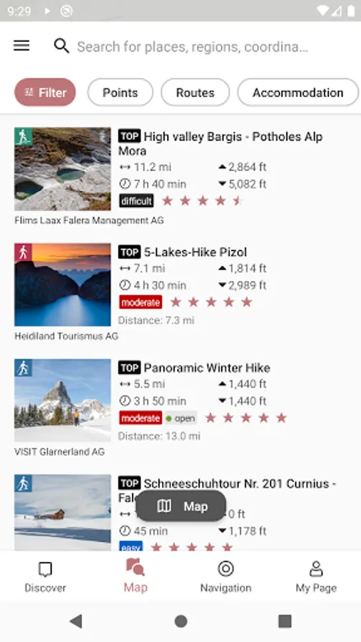 Thanks to the latest vector maps, you can enjoy a razor-sharp render on all zoom levels. Depending on the activity and the season, you can choose between different map backgrounds from Swisstopo or OSM.