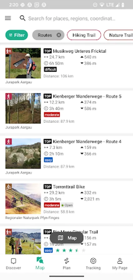 You can save the official maps and itineraries on your device to use them offline, which is especially useful in remote areas with poor network coverage. All itineraries feature an elevation profile, description, GPX-Track and photos.