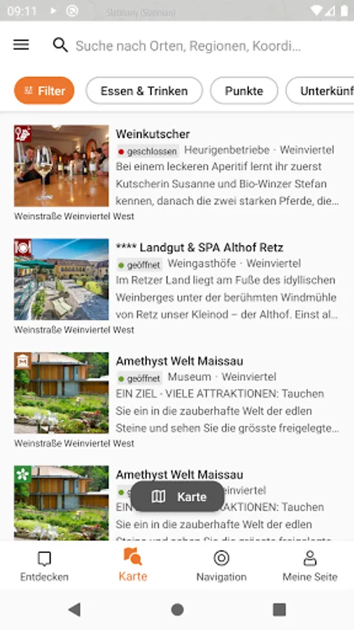 Discover the Weinviertel West wine route with the WEINfinder app and explore the four exciting wine adventure tours. You can expect interesting points such as the key experiences (oversized keyholes with a view), photo points in a quiet and idyllic location and real insider tips of the western Weinviertel. With the help of the app, stopping places, shopping experiences or accommodations in the region can be found. The event calendar provides an overview of all opening times (opening times of Heurigen), culinary events and wine festivals in the western Weinviertel.