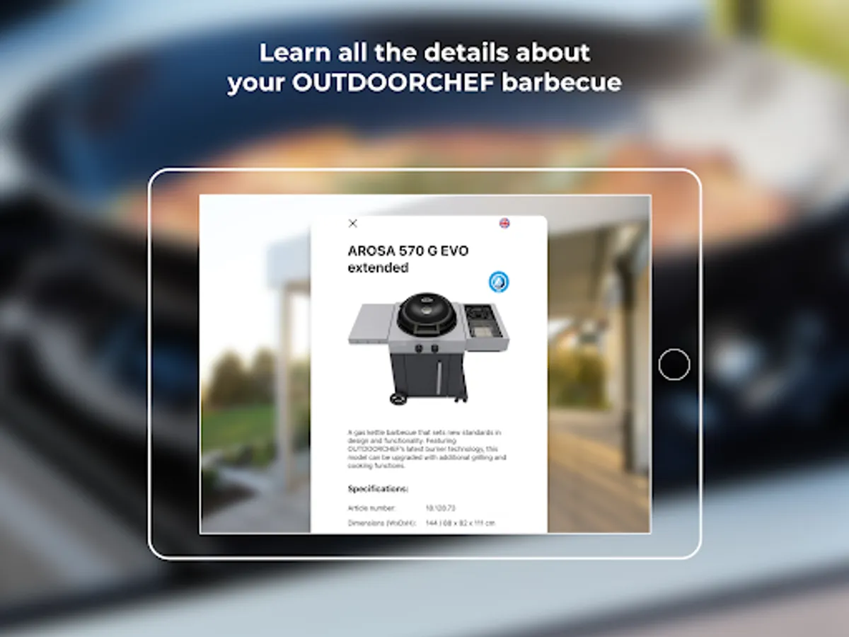 With Outdoorchef 3D, you can visualise Outdoorchef barbecues as a 3D model virtually in your own home. Find out which model you like best or fits best in your garden, balcony or terrace, thanks to the latest AR technology. Also, take pictures of your Outdoorchef barbecue directly in the app and share them with your friends on all platforms. True to the motto: maximum enjoyment with minimum effort!