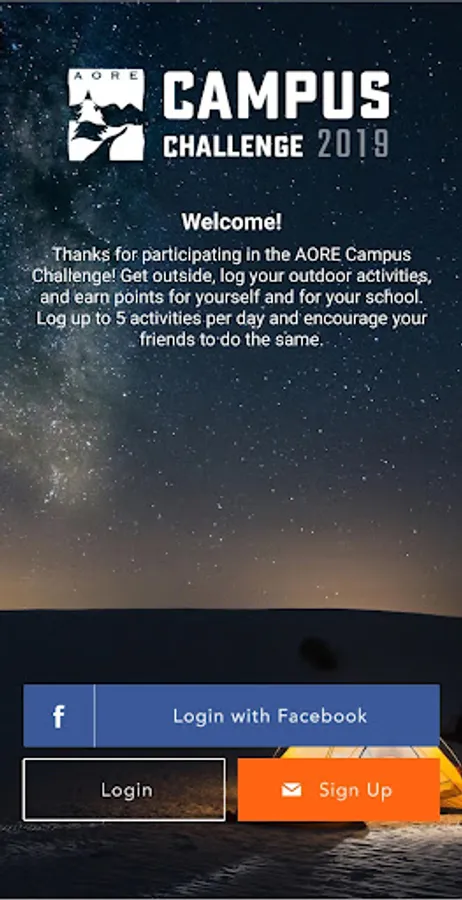 Get the official AORE CC app and participate in the AORE Campus Challenge to help your school win the title of National Outdoor Champion. Create an account, log outdoor activities, share your outdoor adventures through social media and be entered to win awesome prizes and give-a-ways.